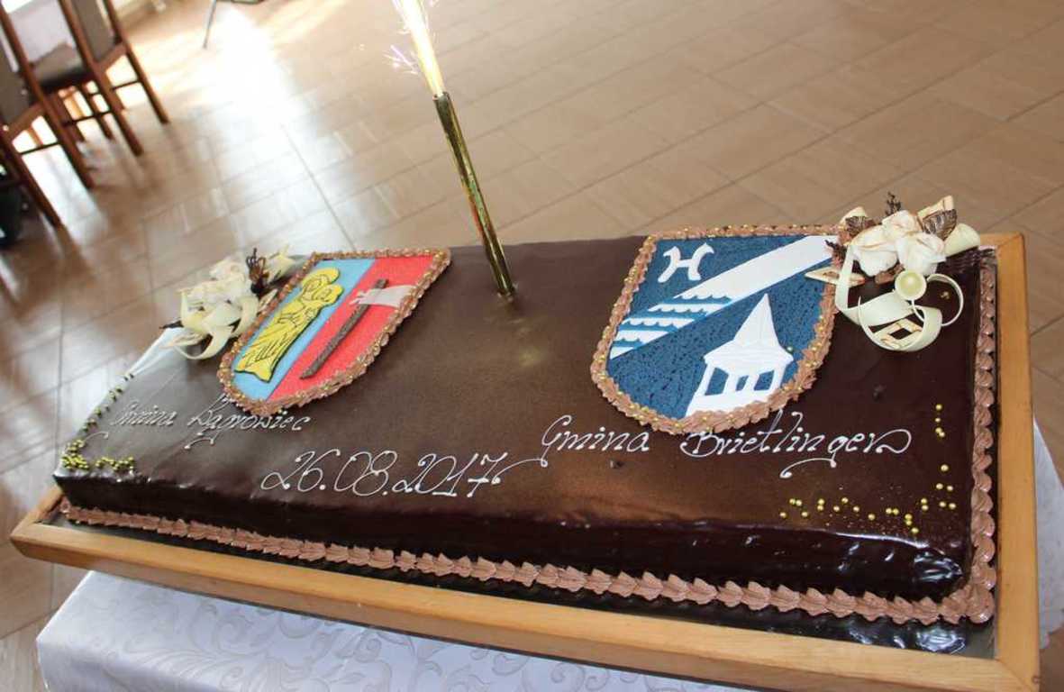 Po okolicznościowych przemówieniach wymieniono się pamiątkowymi upominkami. Burmistrz Helmut Kowalik otrzymał witraż oraz flagę z herbem Gminy Wągrowiec, natomiast Wójt Przemysław Majchrzak, dwa krzewy pnących róż w barwach biało- czerwonej flagi. Wszyscy uczestniczący w uroczystości zostali zaproszeni do wspólnej, pamiątkowej fotografii, po czym włodarze obu gmin częstowali gości, specjalnie na tę okazję upieczonym tortem, udekorowanym herbami obu gmin. W dalszej części dnia goście z Niemiec zostali zaproszeni do Łazisk, gdzie p. Piotr Batura – zdun, publicysta, autor bloga, kolekcjoner, inicjator pierwszej zduńskiej szkoły w Polsce, opowiedział o swojej pasji i zaprezentował eksponaty ze swojej kolekcji starych, żeliwnych drzwiczek kominkowych. Ten wyjątkowy dzień zakończyła wspólna biesiada w świetlicy wiejskiej w Redgoszczy.