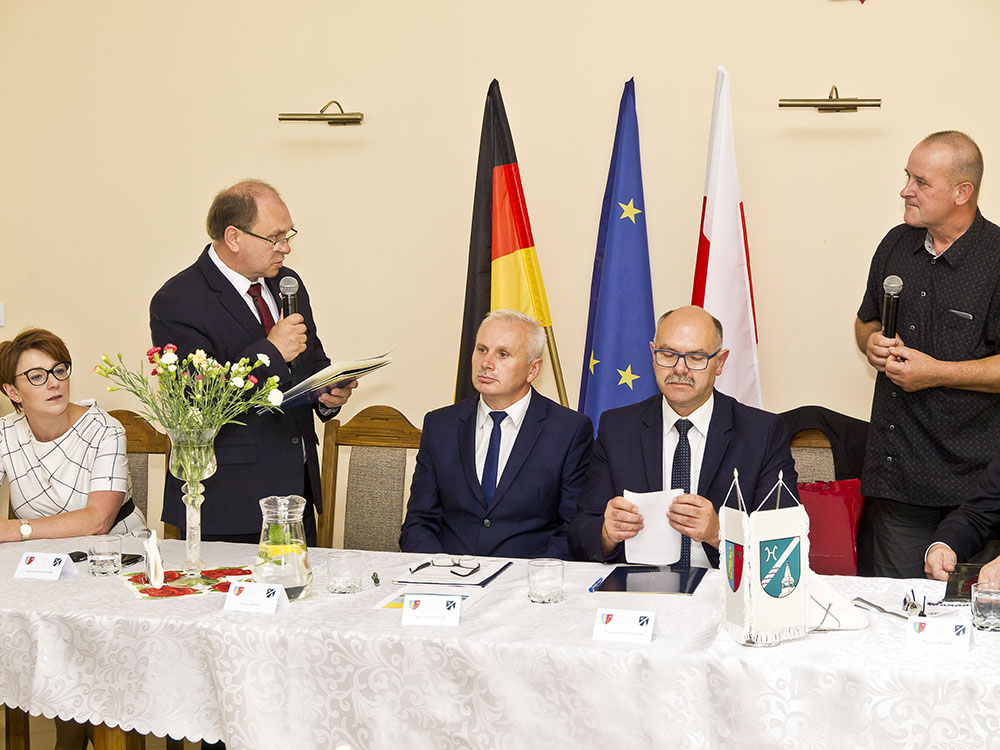 Dzień 26 sierpnia 2017 roku to kolejna bardzo ważna data w historii Gminy Wągrowiec. Tego dnia, goście z Niemiec zapoznali się z funkcjonowaniem samorządu Gminy Wągrowiec oraz wzięli udział w obradach Rady Gminy Wągrowiec, która odbyła się w świetlicy wiejskiej w Grylewie. Po występie grupy „Pałuckie Smyki” działającej przy Gminnym Ośrodku Kultury w Łeknie, przewodniczący Rady Gminy Wągrowiec przywitał wszystkich obecnych.
