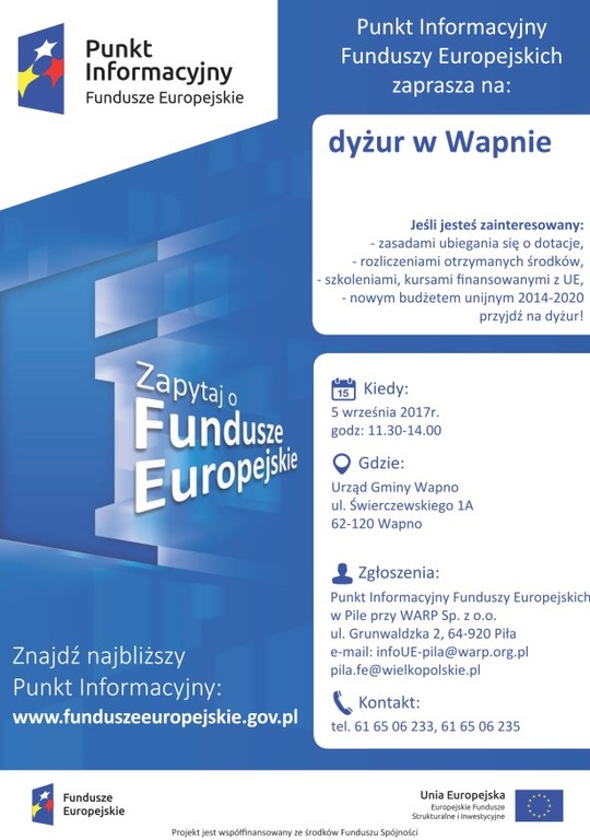 - Urzędzie Gminy WAPNO w godz. 11:30-14:00.