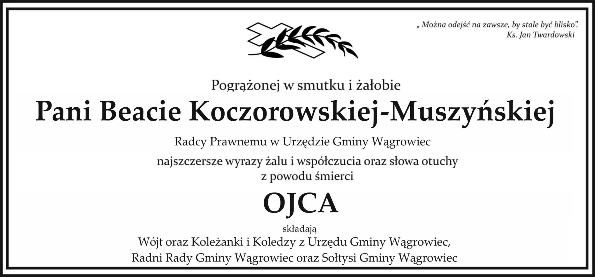 Z ŻAŁOBNEJ KARTY Opublikowano: 30 lipca 2025 09:55 Kategoria: Aktualności Wyświetleń: 56 Wydrukuj Zobacz równieżGUS – badania ankietowe Zmiana stawki opłaty za odbiór i gospodarowanie...81. rocznica Powstania Warszawskiego - 1 sierpniaZ ŻAŁOBNEJ KARTY Uwaga aktualizacja! ZAPRASZAMY NA SZKOLENIA Z... Realizacja zadania „Przebudowa drogi gminnej...