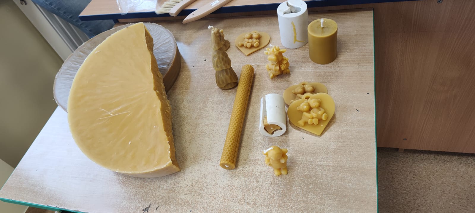 Część praktyczna pozwala uczestnikom na samodzielne wykonanie świeczki z węzy pszczelej, a także przymierzenie stroju pszczelarza – co stanowi nie tylko atrakcję, ale również cenne doświadczenie edukacyjne.