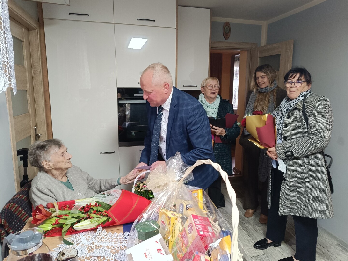 Z tej wyjątkowej okazji dostojną jubilatkę odwiedzili również dr Małgorzata Chmielarz – Wójt Gminy Wągrowiec, radny Rady Gminy Krzysztof Śmigielski, sołtys wsi Przemysław Wielgocki oraz delegacja Rady Seniorów Gminy Wągrowiec – Krystyna Urbańska - przewodnicząca i Stefania Pawlak. Goście złożyli Pani Kornelii najserdeczniejsze życzenia zdrowia, radości i wielu kolejnych lat w otoczeniu bliskich, podkreślając, że tak wyjątkowe jubileusze są ważnym wydarzeniem dla całej społeczności Gminy Wągrowiec.
