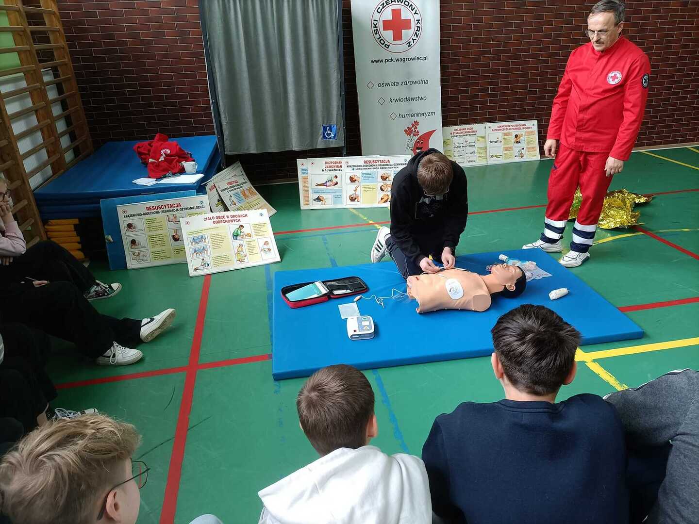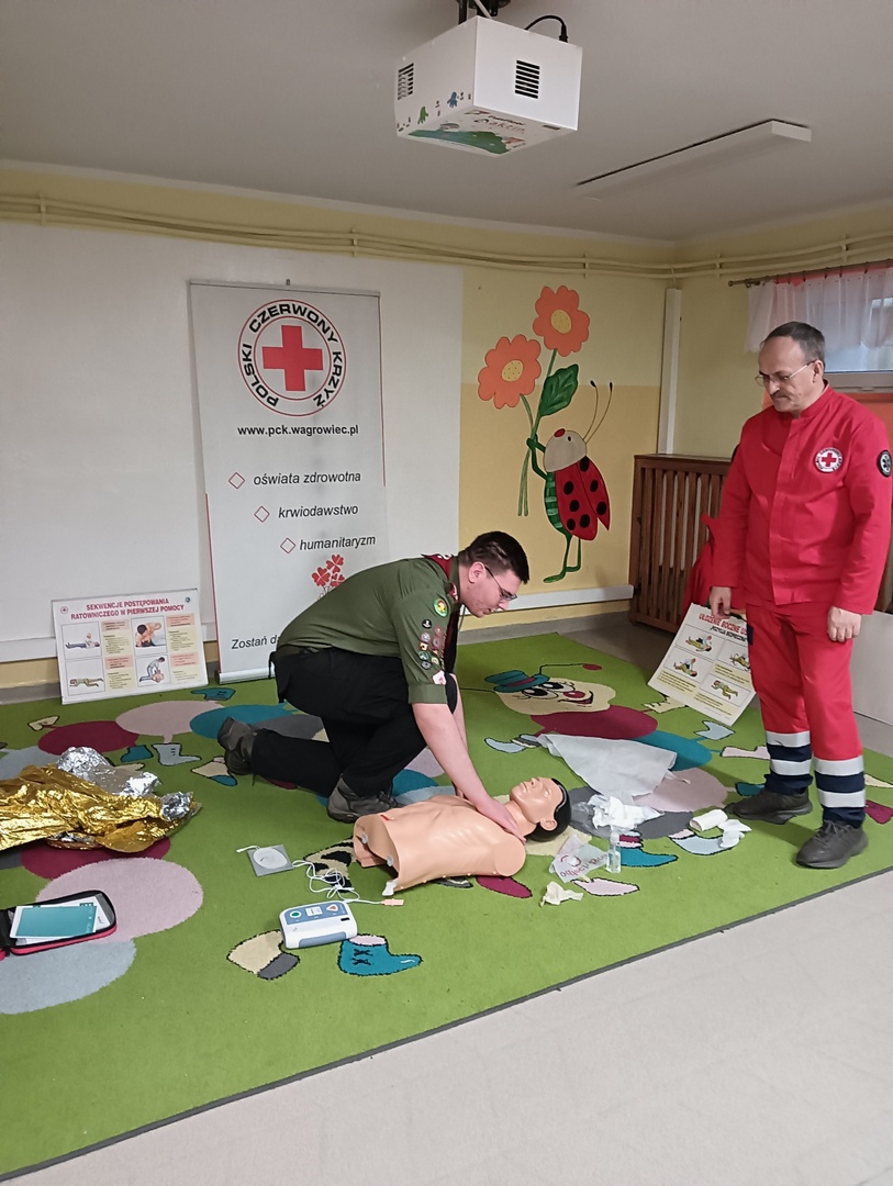 Około 300 uczniów szkół, harcerzy i członków Młodzieżowych Drużyn Pożarniczych uczestniczyło w programie „Ratowniczek pomaga Tobie pomagać”, obejmującym naukę udzielania pierwszej pomocy i obsługi defibrylatora AED. Dzięki udziałowi w zajęciach poznali zasady zapobiegania zakrztuszeniom, prawidłowego ułożenia poszkodowanego w pozycji bocznej ustalonej, opatrywania ran, wykonywania ucisków reanimacyjnych na fantomie oraz właściwego wzywania pomocy.