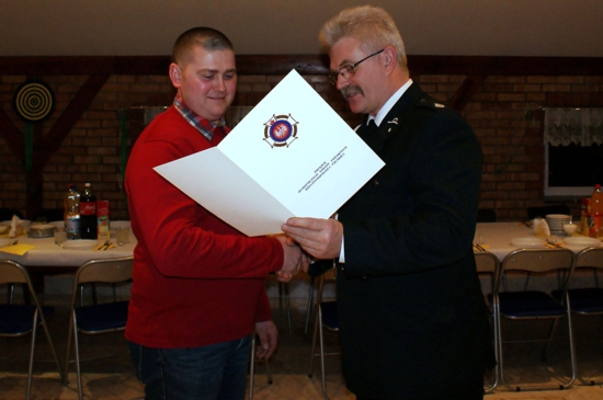 Miłym akcentem było podjęcie uchwały o przyznaniu godności Członka Honorowego OSP Stanisławowi Waszykowi – wieloletniemu prezesowi miejscowej jednostki, który w 2003 roku został odznaczony Złotym Znakiem Związku. „Dopóki mi sił starczy będę nadal wspierał tę szczytną działalność” – powiedział wyróżniony. Również pełniący funkcję kierowcy – mechanika Marcin Głomb, został wyróżniony dyplomem przez Wójta Gminy Wągrowiec za przykładną obsługę sprzętu.