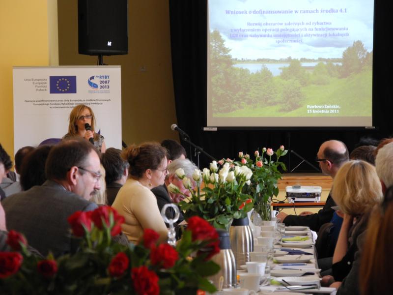 Na zaproszenie Pani Doroty Knopczyńskiej – Prezes Stowarzyszenia Lokalnej Grupy Rybackiej „7 Ryb” do Wiejskiego Ośrodka Integracji i Aktywizacji Wsi w Pawłowie Żońskim (Gmina Wągrowiec) przybyło ponad 100 osób zainteresowanych pozyskaniem środków z Unii Europejskiej w ramach PO RYBY.