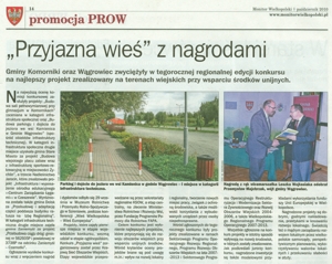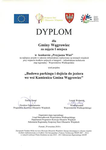 Podsumowanie konkursu i wręczenie nagród odbyło się na konferencji „Wieś Wielkopolska – Wieś Europejska” w Szreniawie dnia 29.09.2010 r. Propagowanie wiedzy na temat możliwości wykorzystania środków z programów Unii Europejskiej na obszarach wiejskich. Gminę Wągrowiec reprezentował Wójt Przemysław Majchrzak wraz z Przewodniczącym Rady Gminy Panem Michałem Nogalskim, Radnym Panem Januszem Patelskim i Sołtysem Panem Januszem Woźniakiem. Wójt Gminy Wągrowiec przedstawił na konferencji prezentację.