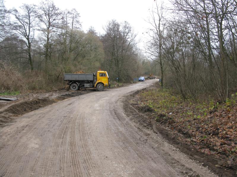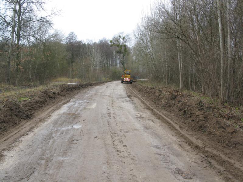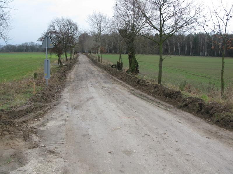 Równolegle prowadzone są roboty ziemne przez głównego wykonawcę. Nawierzchnia tłuczniowa drogi zostanie poszerzona do 4m. Planowany termin zakończenia robót: 10.12.2009r. Koszt prowadzonych robót 120 tyś. zł.