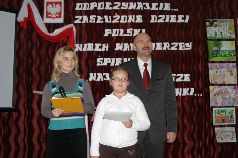 Kolejnym punktem uroczystości było wręczenie laureatom konkursu plastycznego pt „Akt kapitulacji w lasku COMPIEGNE” nagród i pamiątkowych dyplomów. Następnie uczniowie ze Szkoły Podstawowej im. Powstańców Wielkopolskich w Łeknie recytowali wiersze, o tematyce patriotycznej.
