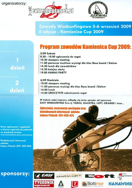 Zawody Windsurfingowe – Kamienica 2009 W dniach 5-6 wrzesień 2009 zapraszamy na II edycję zawodów, które odbędą się w Kamienicy. Opublikowano: 25 sierpnia 2009 13:23 Kategoria: Aktualności Wyświetleń: 212 Wydrukuj Zobacz równieżGminny Turniej WsiDożynki Gminne 2009XII Zlot Seniorów na PałukachZawody Windsurfingowe – Kamienica 2009Rozstrzygnięty przetargOgłoszony przetarg