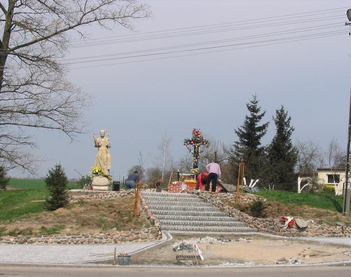Prace przy pomniku Jana Pawła II w Łeknie.