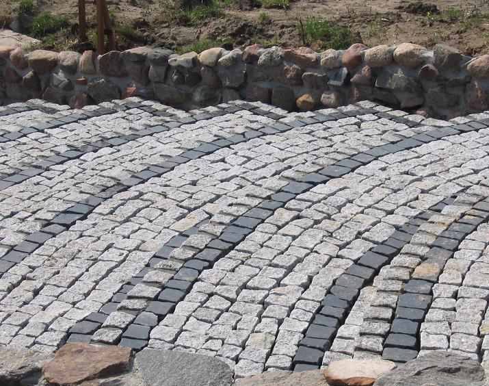 Firma BRUK – BUD z Wągrowca Pana Rafała Milczarka, układa kostkę granitową na podeście i schodach prowadzących do pomnika. Po wykonaniu prac brukarskich wykonane zostaną prace związane z ukształtowaniem skarp, na których zostanie nasadzona zieleń.