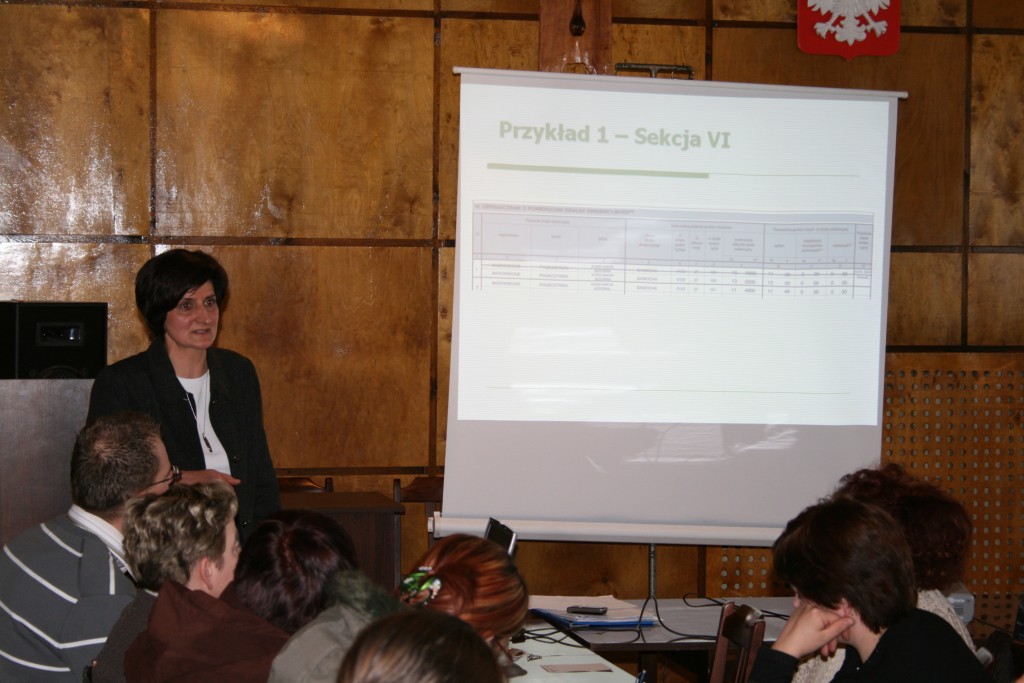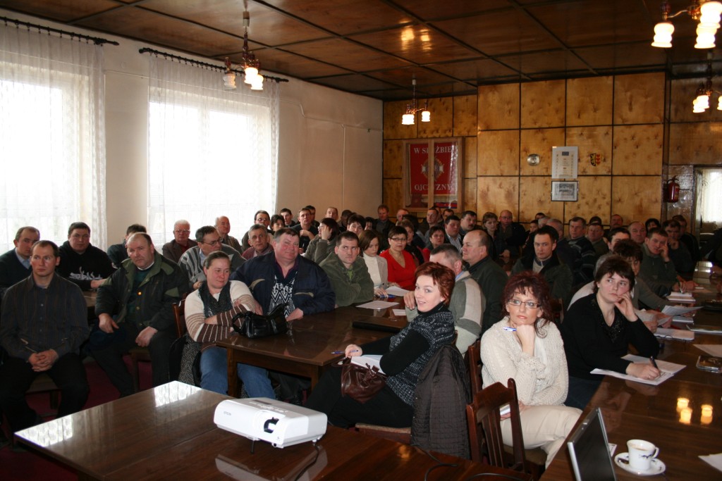 Pani Kierownik Dorota Ewertowska szczegółowo przedstawiła temat płatności obszarowych. Omówiła temat na 3 przykładowych gospodarstwach rolnych oraz zapoznała zebranych z zasadami wypełniania załączników graficznych i odpowiedziała na wszystkie zadane przez rolników pytania, rozwiewając wątpliwości dotyczące zmian jakie nastąpiły w 2008 roku.