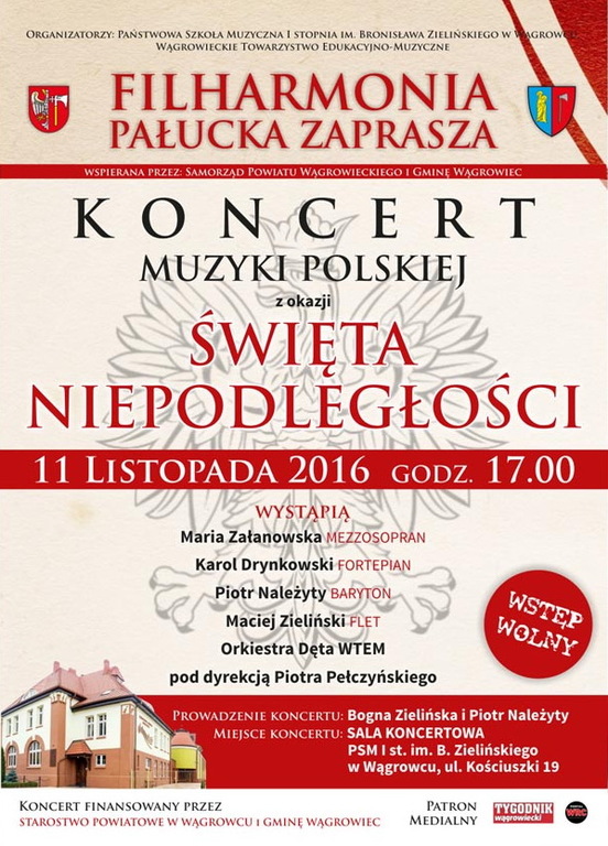 Uroczystości: Ogólnopolskie, impreza otwarta Koncert Muzyki Polskiej Kiedy?11 listopada 2016 17:00 Gdzie?Wągrowiec, wągrowiecki, wielkopolskie Wągrowiec Zobacz również02.11.2016Zaduszki11.11.2016Gminne Obchody Narodowego Święta Niepodległości11.11.2016Koncert Muzyki Polskiej26.11.2016Peregrynacja dokumentu Zbyluta do źródeł15.01.201725 Finał WOŚP w Łęgowie