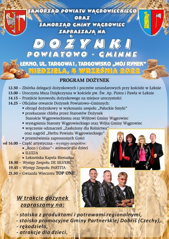 Festyny, pikniki: Dożynkowe Dożynki Powiatowo-Gminne Kiedy?04 września 2022 od: 13:00 do 23:00 Gdzie?ul. Targowa 1, Łekno, Wągrowiec, wągrowiecki, wielkopolskie Targowisko „Mój Rynek” Zobacz również20.08.2022Turniej Piłki Nożnej im. Bernarda Kuliberdy20.08.2022Festyn BAWMY SIĘ RODZINNIE27.08.20224 Moto Piknik04.09.2022Dożynki Powiatowo-Gminne11.09.2022Święto Mleka oraz Turniej Wsi na Wesoło17.09.2022800-lecie Łazisk